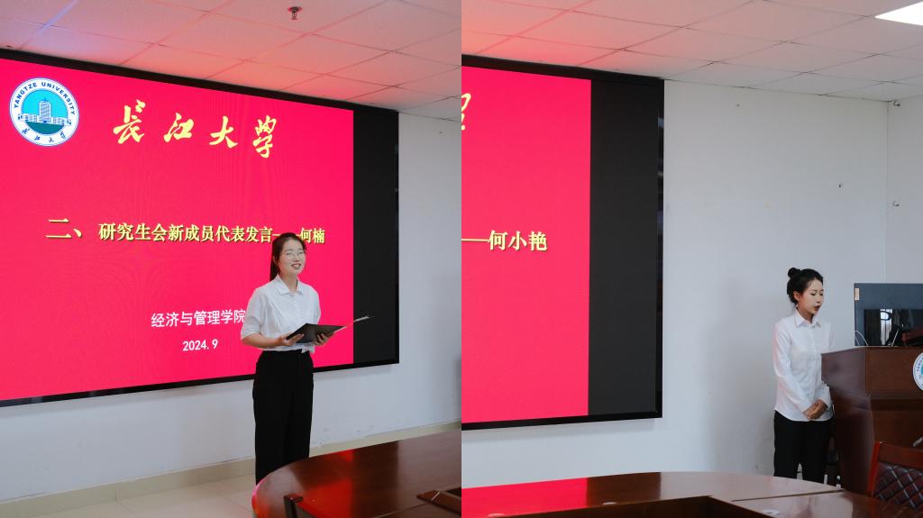 大会伊始,参会同学依次进行自我介绍。大会第二项,新成员代表何楠阐述了自己加入研究生会的原因,并承诺将加强学习,提升自我,努力适应研究生会工作的需要。大会第三项,主席团代表何小艳的发言中分享了对研会未来工作的设想:一要明确自身职责,开展学生服务;二要加强组织管理,建设优质团队;三要挖掘学院特色,创建品牌活动。