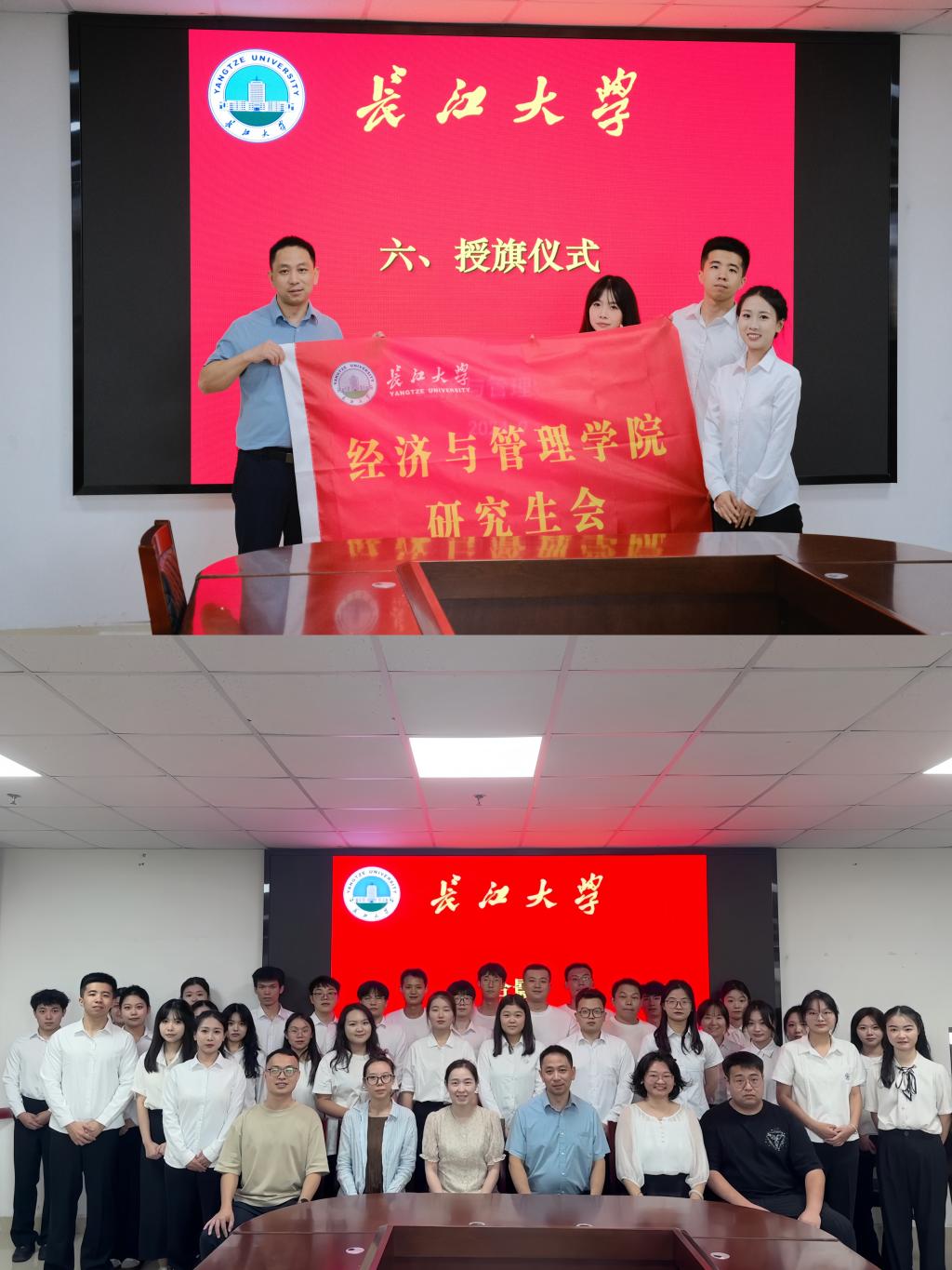 大会还对新一届研究生会主席团成员进行了授旗仪式,这面旗帜正式交接到他们手中,象征着新的使命与责任。这一环节不仅增强了成员的荣誉感和归属感,也激发了大家对未来工作的无限憧憬与积极投身其中的热情。