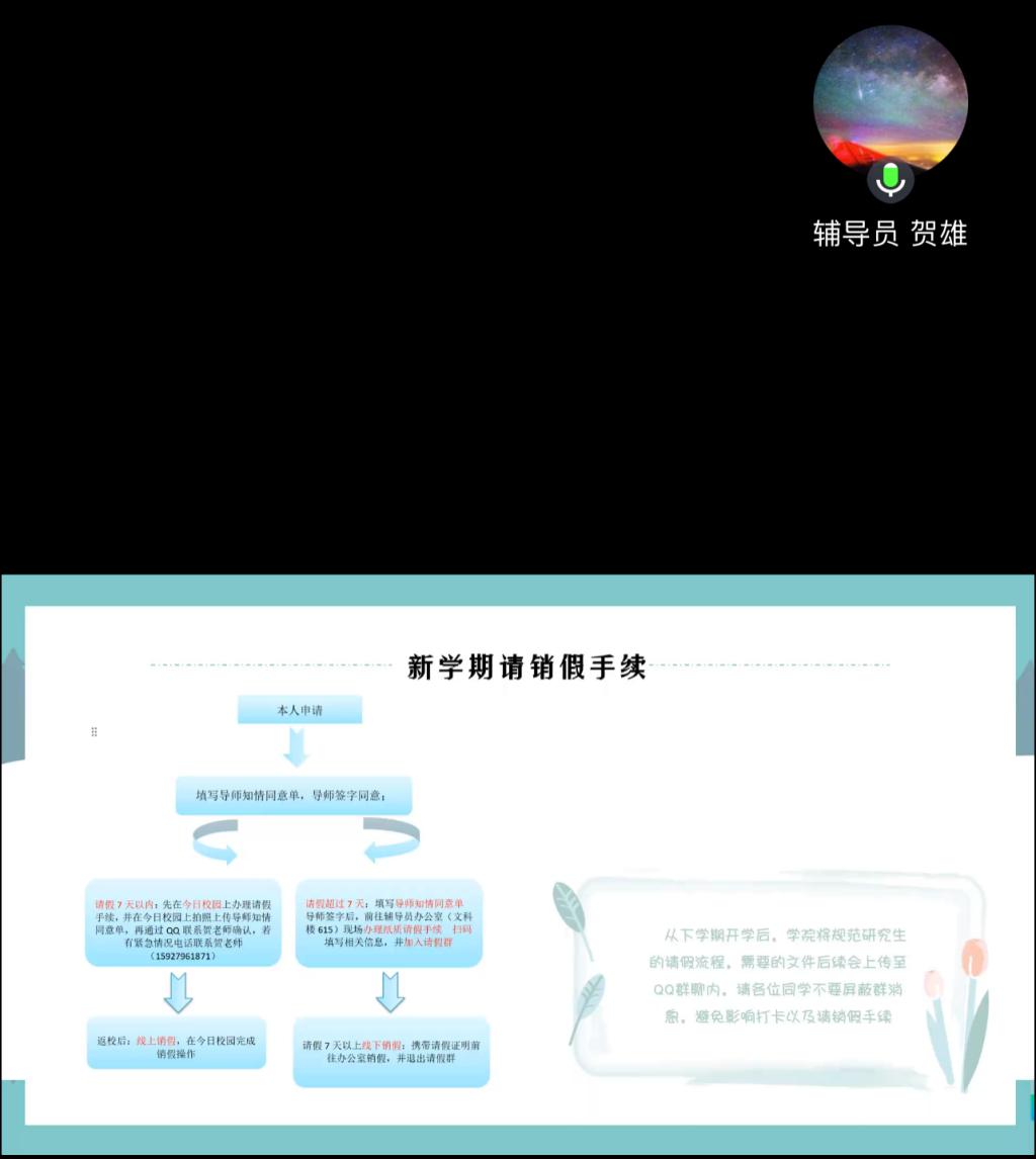 随后,贺老师详细阐述了寒假离校及新学期请销假手续的办理流程与规范,要求同学们务必遵循学校规定,确保假期期间行踪明确、信息畅通无阻。