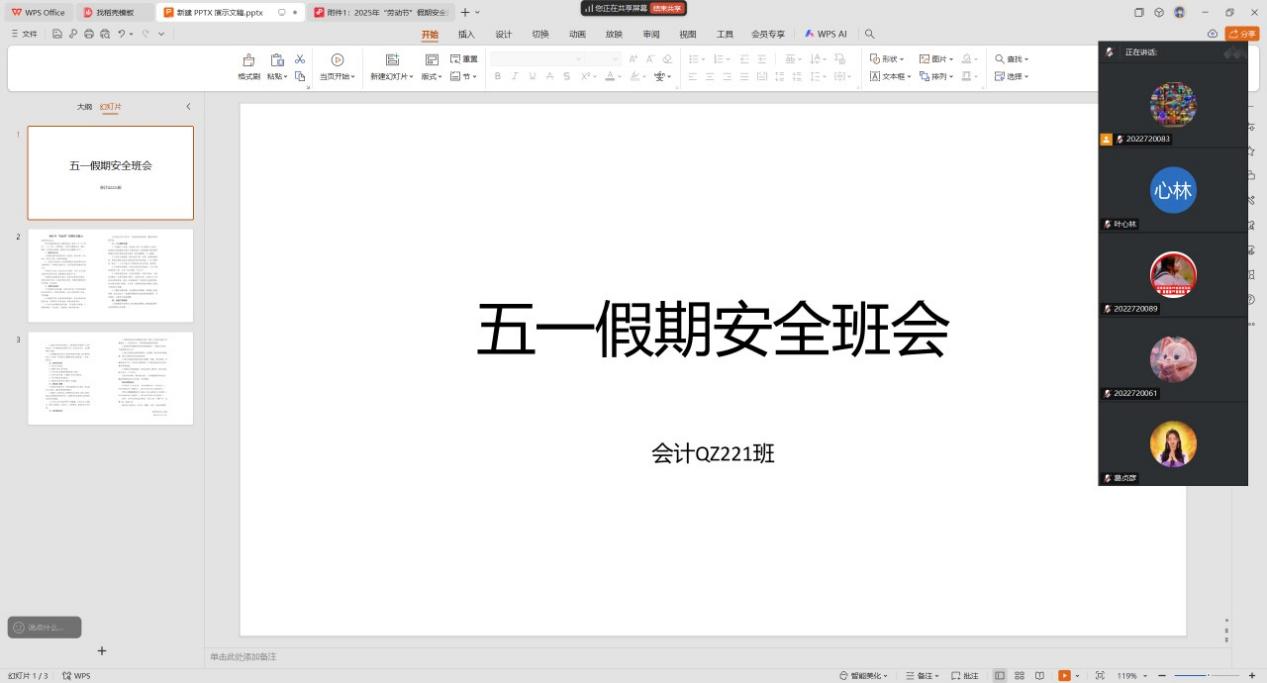 召开主题班会,强化安全规范。学院采用线上、线下相结合的方式开展安全教育主题班会,重点强调离校请假制度,要求学生如实登记行程信息,保持通信畅通。同时,结合真实案例,围绕防溺水、网络诈骗、交通出行等七大安全主题进行详细讲解,帮助同学们掌握必要的安全知识和应急技能。