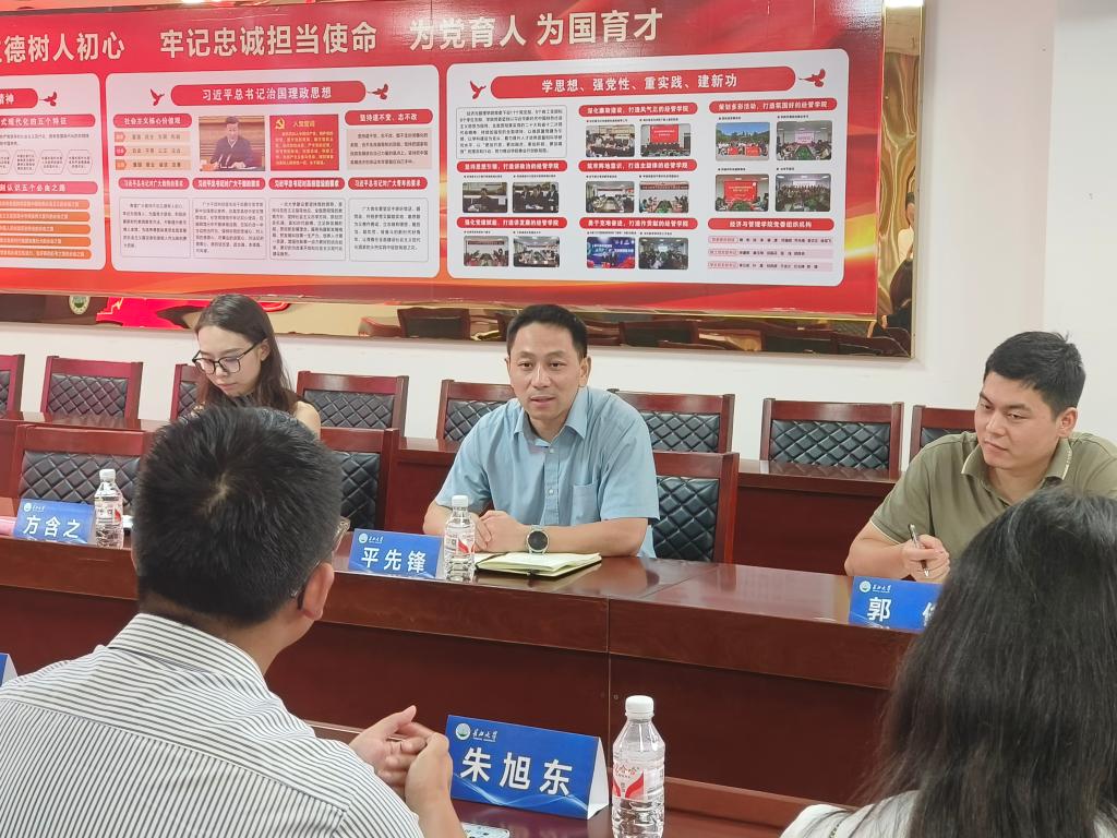 平先锋对襄阳东莞证券股份有限公司负责人一行的到来表示热烈欢迎,他从师资力量、教育教学、人才培养等方面对学院进行了全面的介绍。他表示,希望通过与襄阳东莞证券股份有限公司校企合作的实现,更好的发挥双方在专业实习实践及高端人才培育方面的优势。