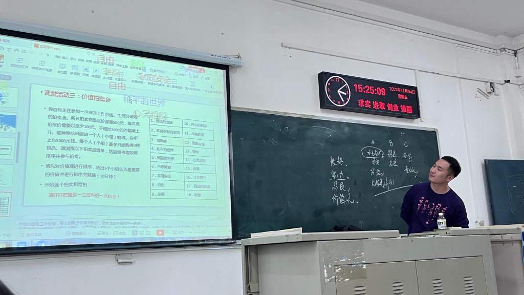 班会伊始,李博老师通过视频引用,强调了人生难题并非一成不变,引导同学们自我发问、自我认知、自我反思,鼓励同学们在兴趣、性格、能力、价值观等方面深刻剖析自我,明确个人状况,进而及早规划未来。随后的交流互动环节,同学们针对“我是一个怎样的人”与“我看重的个人技能”两个问题进行了激烈的讨论,李博老师对同学们的积极参与表示赞许,并期望同学们以所答为目标,踔厉奋发,勇毅前行。