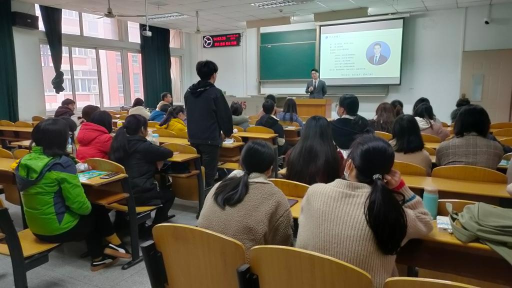 会议开始,李博老师对张小斌学长进行了介绍,就学长在校的经历和毕业后的职业发展进行简要的分享。“未来的发展好不好和自己对自身了解程度是相关的!”张小斌学长根据自身的成长路线和大家开始畅聊职业的选择,他从自身的学生干部成长出发,到大四考公、考研的转变,从加入职场到自己创业。特别是在疫情影响下,他及时调整了自己的职业发展,最终在九个月的时间内成长为公司骨干。提到毕业求职最重要的能力是什么时,他强调是自身的适应能力和学习能力,不管如何选择,都要有“指向性的目标”和“倒推思维”,一步一步走向自己的梦想。