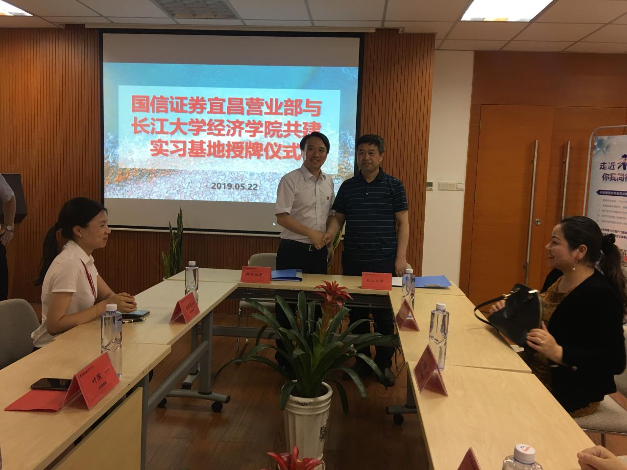 为搭建优质实习基地,建立良好校企合作关系,2019年5月22号,kaiyun登录中国入口登录经济学院与国信证券宜昌营业部共建实习基地授牌仪式正式举行。院长伟鸿率队,副院长徐辉、副书记王中梅、学工办主任平先锋参与合作签署仪式,作签署仪式在国信证券宜昌营业部举行。
