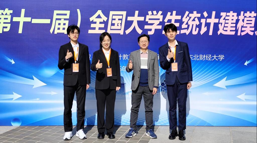 (通讯员 雷宇)近日,2025年(第十一届)全国大学生统计建模大赛国赛答辩赛在东北财经大学圆满落幕。我院本科生张思彤与信数学院本科生施浩然、李博文组建的队伍从省赛到国赛,以《绿行潮涌长三角,低碳先锋谁称雄?——基于DPSIR—博弈论综合模型的长三角城市群绿色交通多维测度与路径探究》作品荣获全国二等奖。